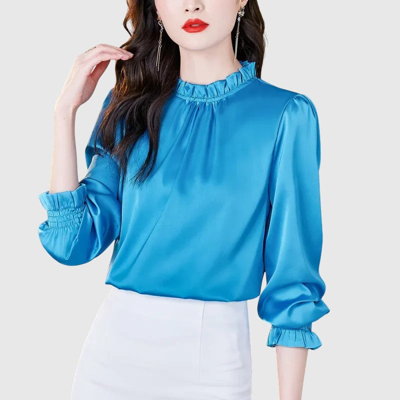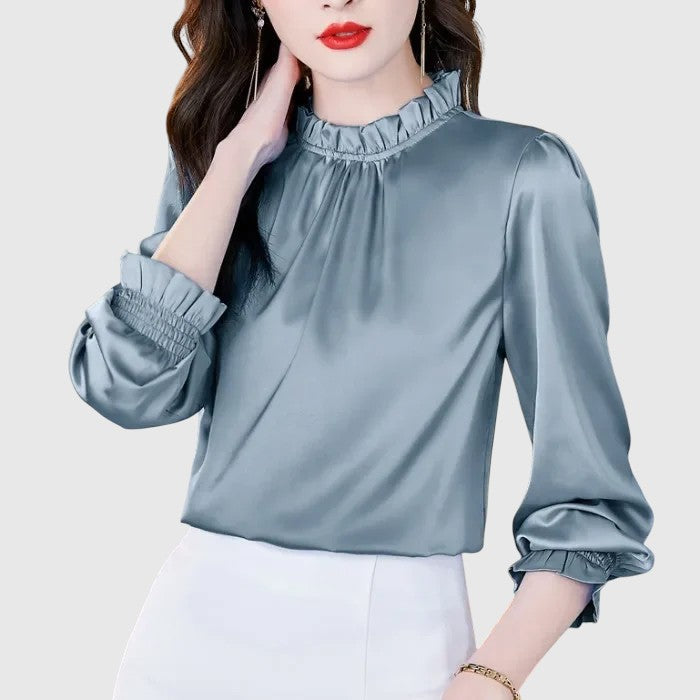 Objavte sofistikovanosť v každom detaile. Táto blúzka kombinuje luxusnú textúru s dokonalým spracovaním, čím vytvára kúsok, ktorý okamžite pozdvihne každý outfit.