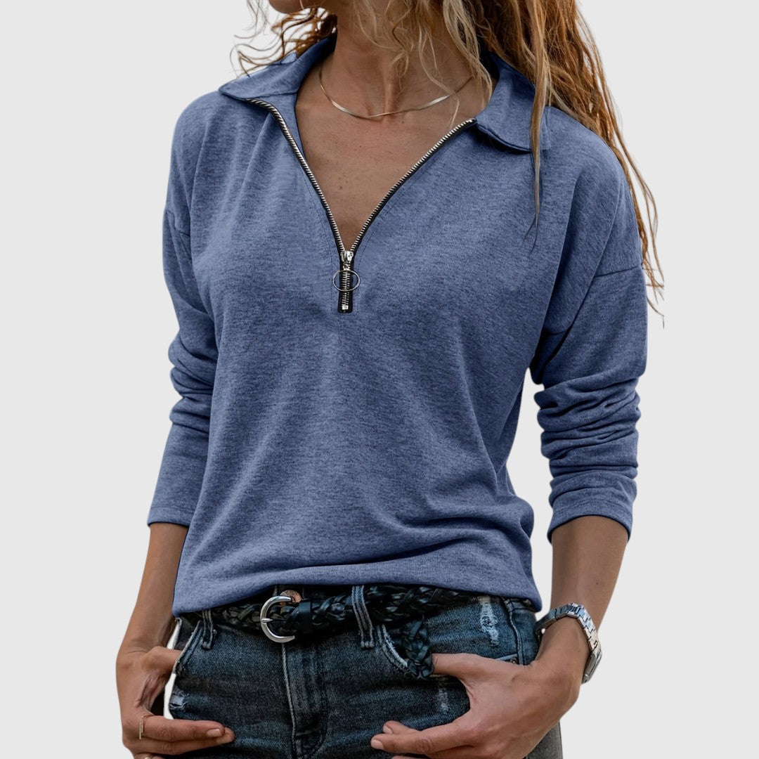 Urobte pulóver Nadin s polovičným zipsom vaším novým obľúbeným kusom pre pohodlné a bezstarostné styling. Obmedzené množstvo na sklade – vezmite si svoj, kým je ešte dostupný!