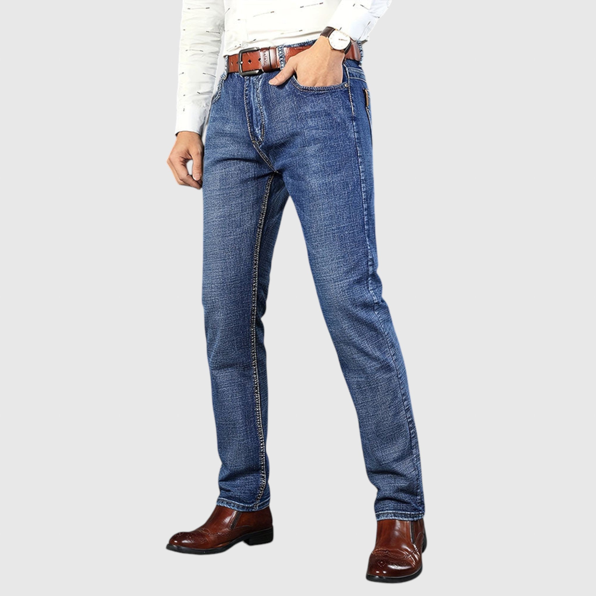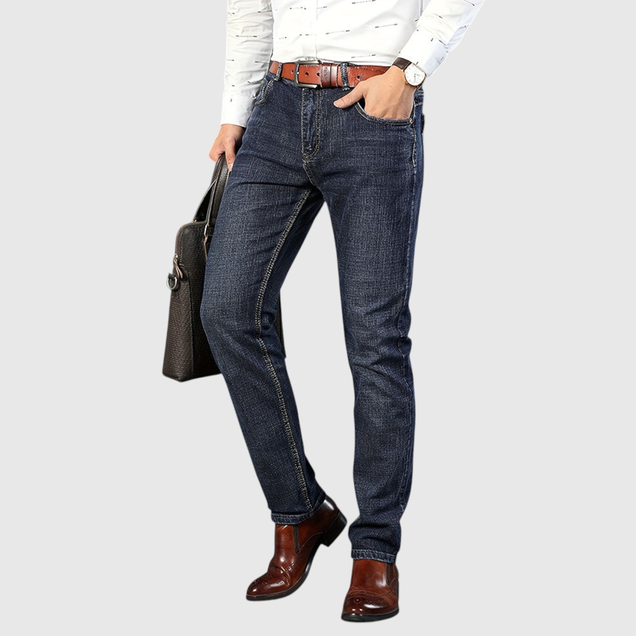 Džínsy Miláno Denim sú určené pre mužov, ktorí ocenia pevnú spoľahlivosť s moderným nádychom. Vyrobené z prémiovej džínovej tkaniny, ponúkajú štruktúrovaný, ale pohodlný strih - ideálne na každodenné nosenie, neformálne prechádzky alebo na kombinovanie s elegantnou košeľou.
