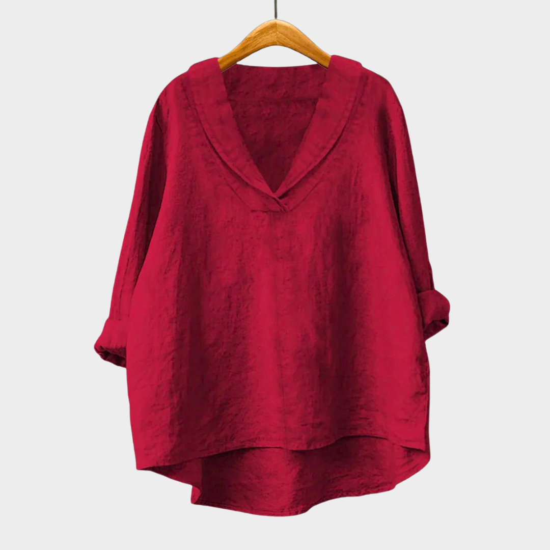 Rozlúčte sa s lepivými, tvrdými a priliehavými blúzkami – tento model s voľným strihom je navrhnutý tak, aby vám umožnil dýchať, pohybovať sa a žiariť. Vďaka mäkkej bavlne a otvorenému výstrihu prináša bez námahy eleganciu pri každom nosení. Od pomalých rán po vianočné večery, toto je vaše každodenné útočisko v pohodlí a tichom sebavedomí.