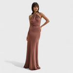 Šaty Elina sa vyznačujú svojím rafinovaným halter výstrihom, ktorý jemne odhaľuje chrbát a pridáva sexy, ale stále elegantný nádych. Plynulý materiál padá prirodzene okolo tela a midi dĺžka zaručuje pohodlie pri akýchkoľvek príležitostiach – ideálne ako na ľahké letné večery, tak aj na formálne momenty.