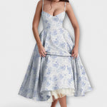 Jemný modrý odtieň a tenké ramienka vytvárajú neodolateľne ľahký vzhľad, ideálny na letné príležitosti. Nezáleží na tom, či ide o romantickú svadbu, záhradnú párty alebo štýlový výlet – šaty Meli vás oslnia v každej situácii.