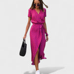 Šaty Daniela ponúkajú klasiku s moderným nádychom – jemný bodkovaný vzor a adaptívny zavinovací strih z nich robia nadčasový model. Ľahký materiál dokonale prilieha, umožňuje pokožke dýchať a poskytuje svieži pocit aj počas teplých dní. Ideálny výber na jarný piknik, brunch s priateľmi alebo večerný výlet do mesta.