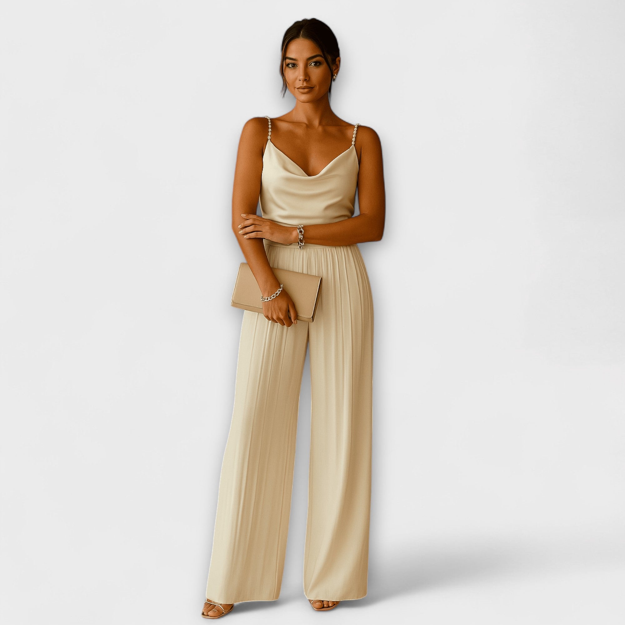 Objavte dokonalý dámsky overal, ktorý spája eleganciu a pohodlie. Tento dizajnový overal je dokonale strihaný, aby zvýraznil vašu siluetu. Vyrobený z kvalitných materiálov, tkanina jemne prilieha k vášmu telu a poskytuje príjemný pocit pri nosení. Nezáleží na tom, či ide o špeciálne príležitosti alebo štýlový každodenný vzhľad, tento overal je perfektnou voľbou. Jeho moderný štýl a starostlivé spracovanie z neho robia nevyhnutnosť vo vašom šatníku.