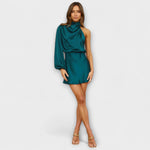Subtílna elegancia s moderným nádychom — šaty Mara očarujú svojím asymetrickým dizajnom a jemnou drapériou, ktorá elegantne obopína postavu. S výstrihom na jedno rameno a strategickou drapériou ponúkajú rafinovaný a pohodlný vzhľad na špeciálne príležitosti alebo nezabudnuteľné noci.