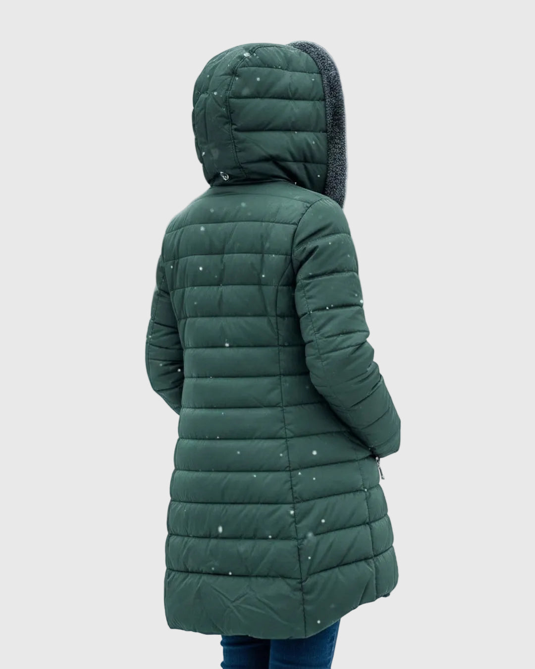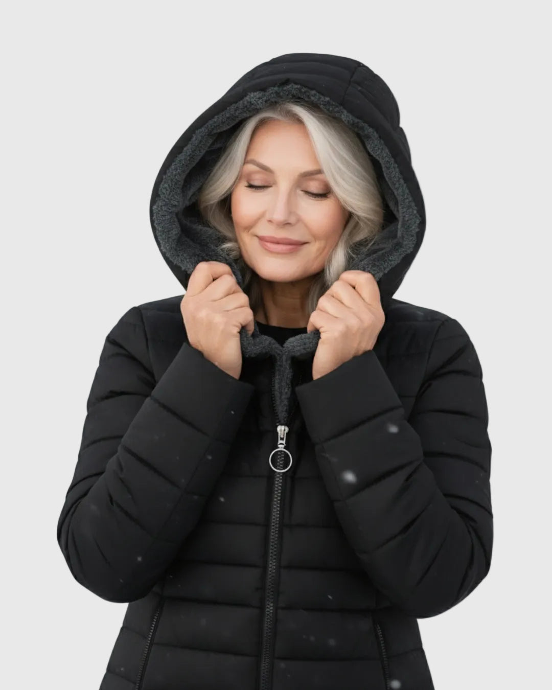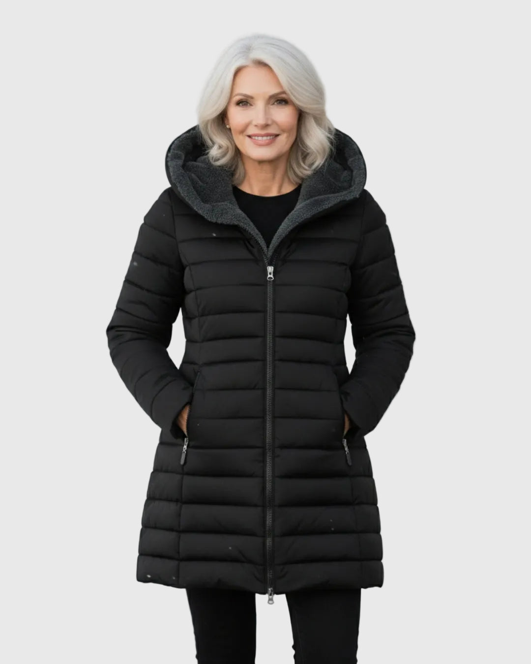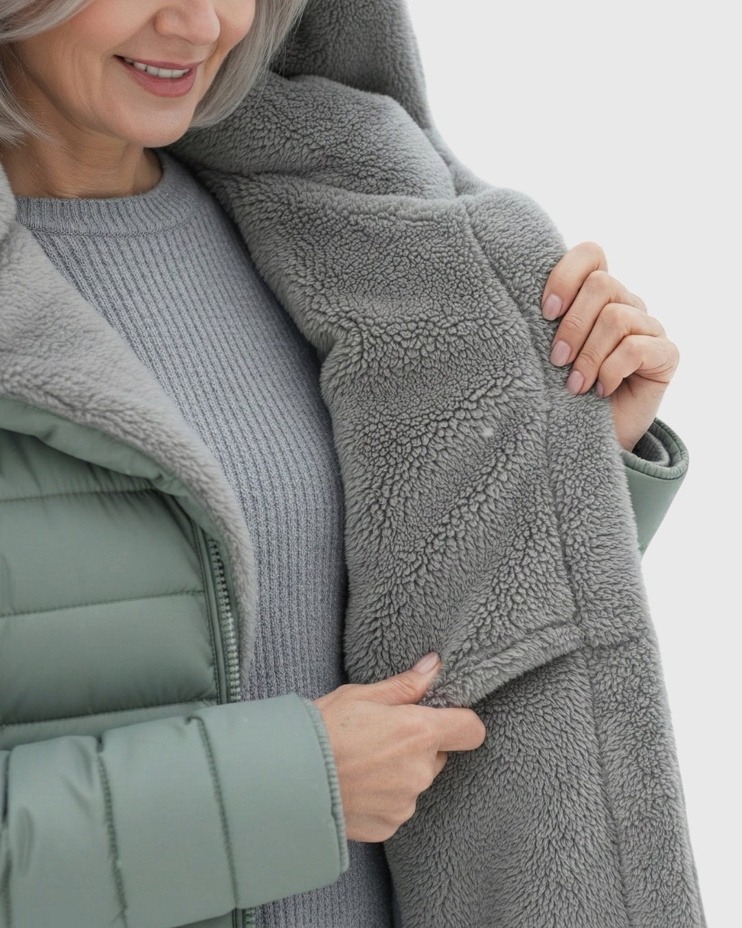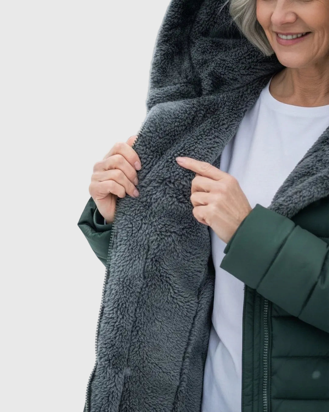 Kabát Clair je navrhnutý pre ženy, ktoré chcú prežiť zimu s pokojom, cítiac sa chránené, pohodlne a starostlivo.