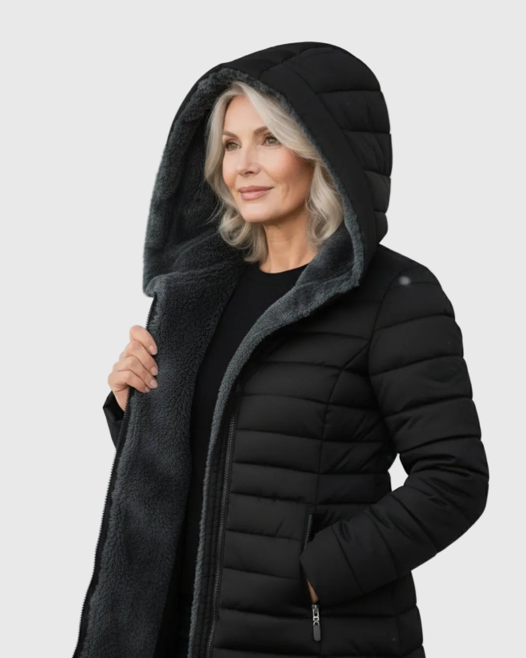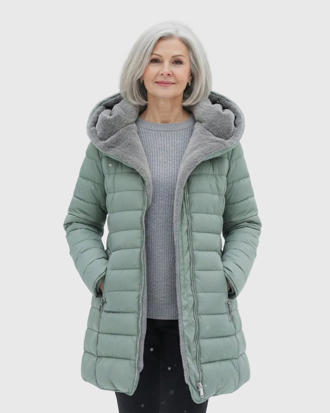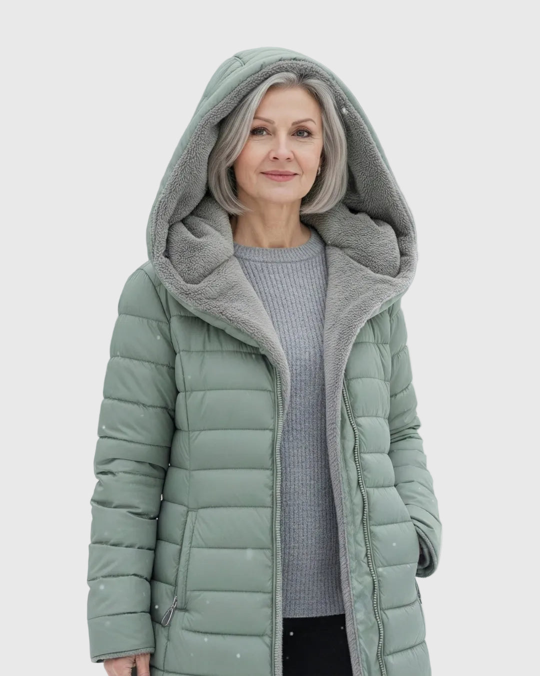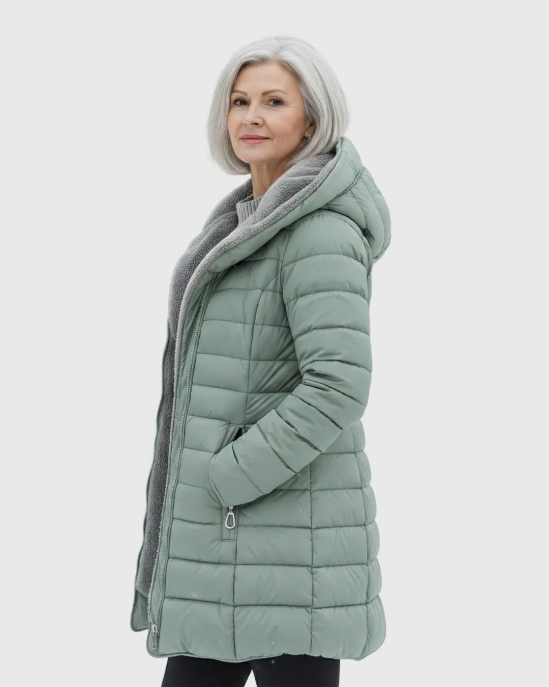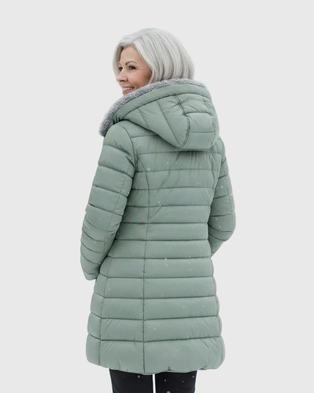 Kabát Clair je navrhnutý pre ženy, ktoré chcú prežiť zimu s pokojom, cítiac sa chránené, pohodlne a starostlivo.