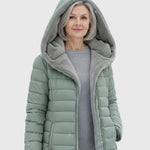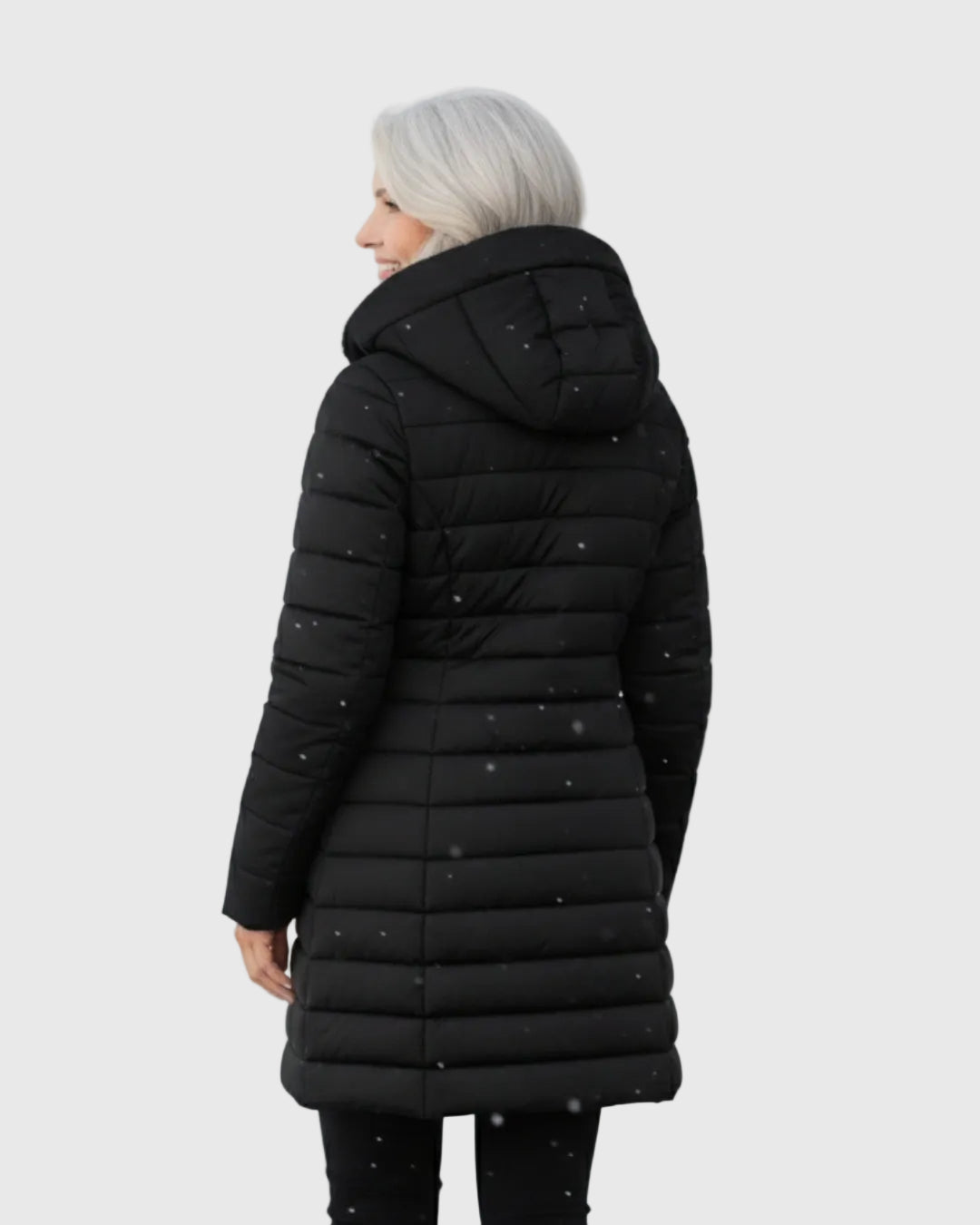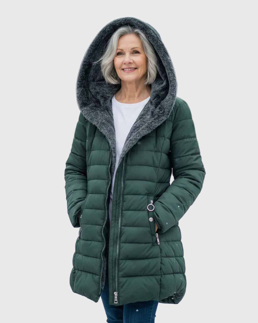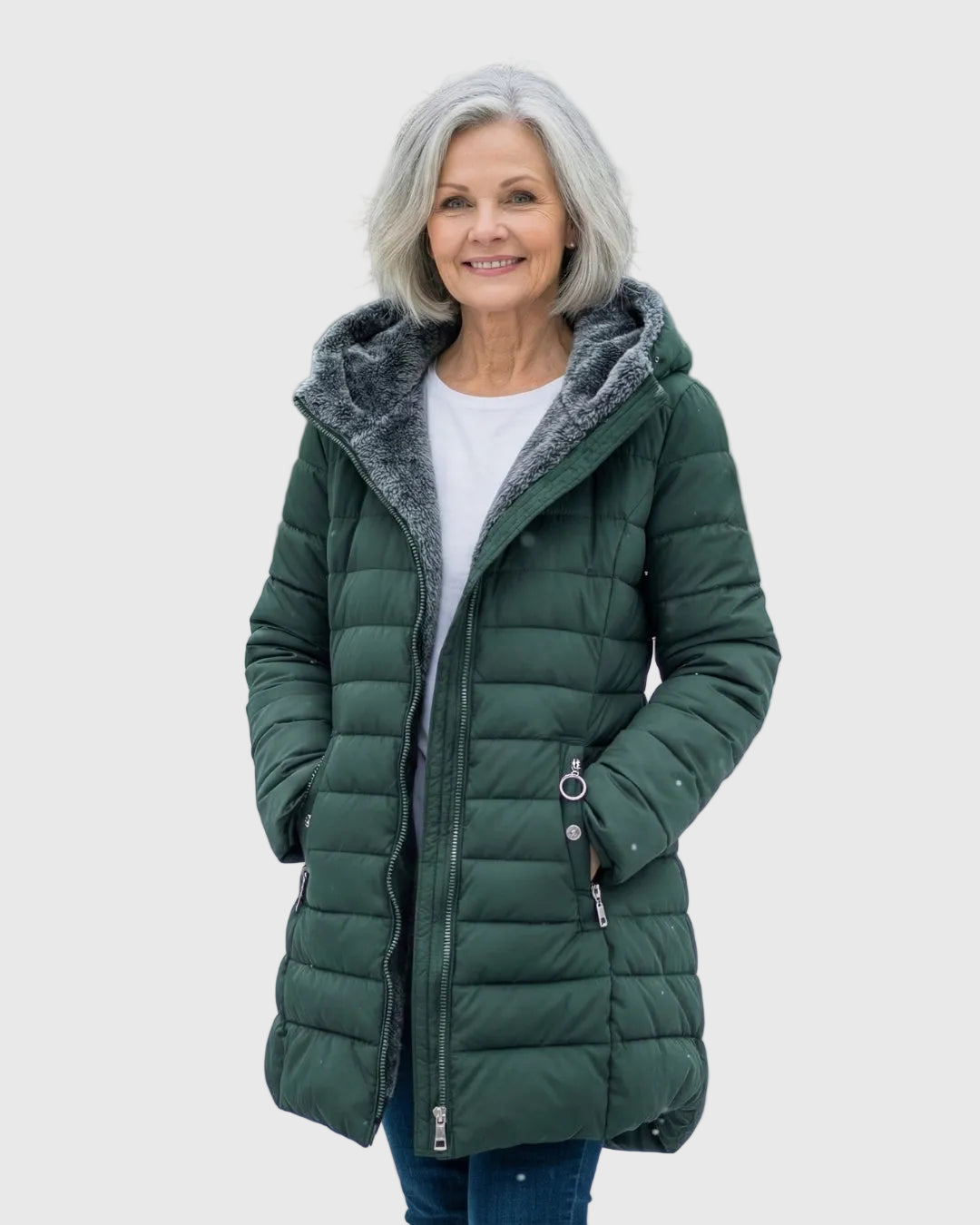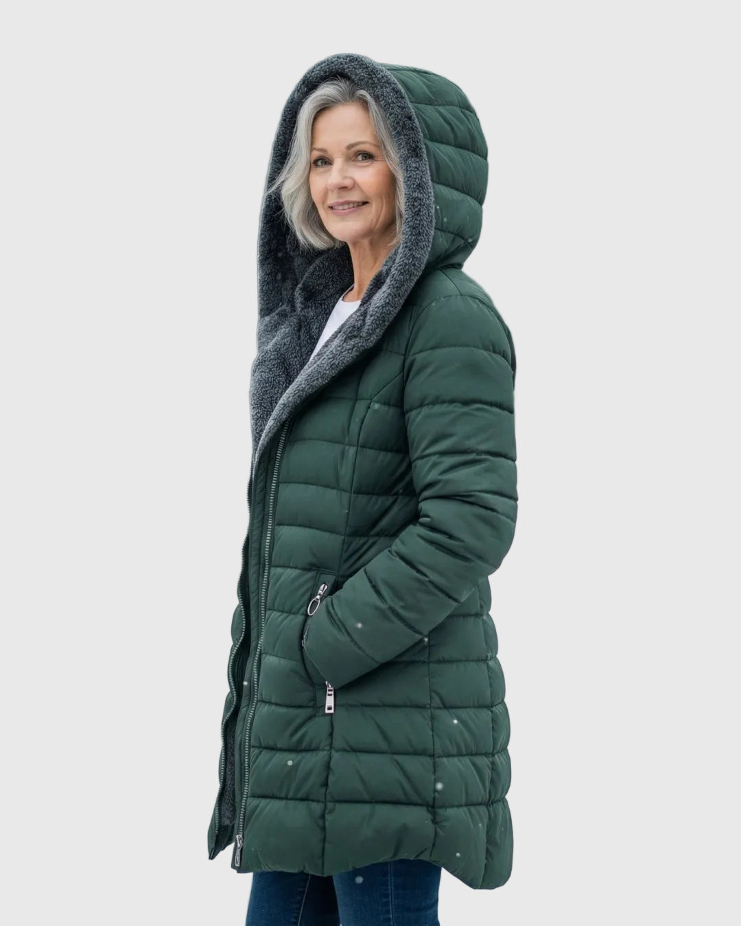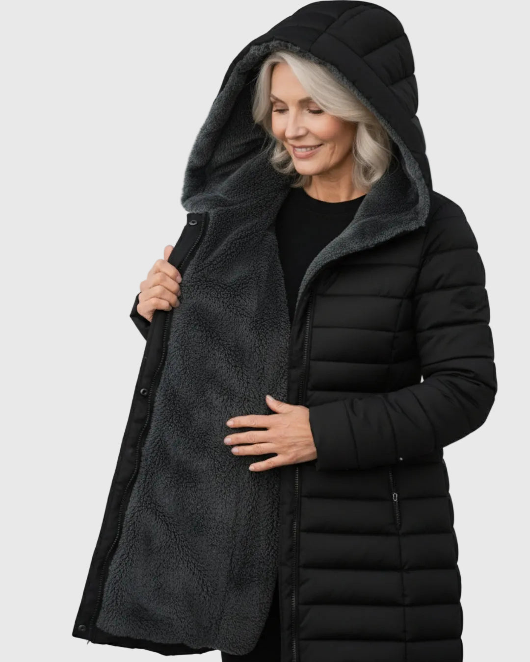 Kabát Clair je navrhnutý pre ženy, ktoré chcú prežiť zimu s pokojom, cítiac sa chránené, pohodlne a starostlivo.