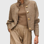 Josephine je navrhnutá pre ženy, ktoré ocenia bezproblémovú eleganciu s ušitým pocitom. Tento krásne textúrovaný pletený kabátvysoký rafinovaný golier a výrazné gombíky, ktoré dodávajú vyleštený dôvtip každému outfitu. Jednoduchý na vrstvenie a nekonečne univerzálny, Josephine sa rovnako dobre hodí k elegantným nohaviciam ako aj k džínsom, čo z neho robí ideálny kúsok na zvýšené každodenné nosenie.