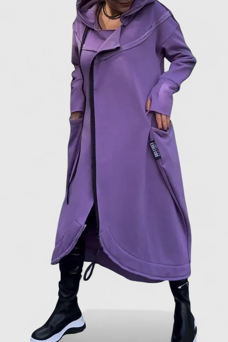 MARIE - Dlhý kabát s kapucňou a zipsom