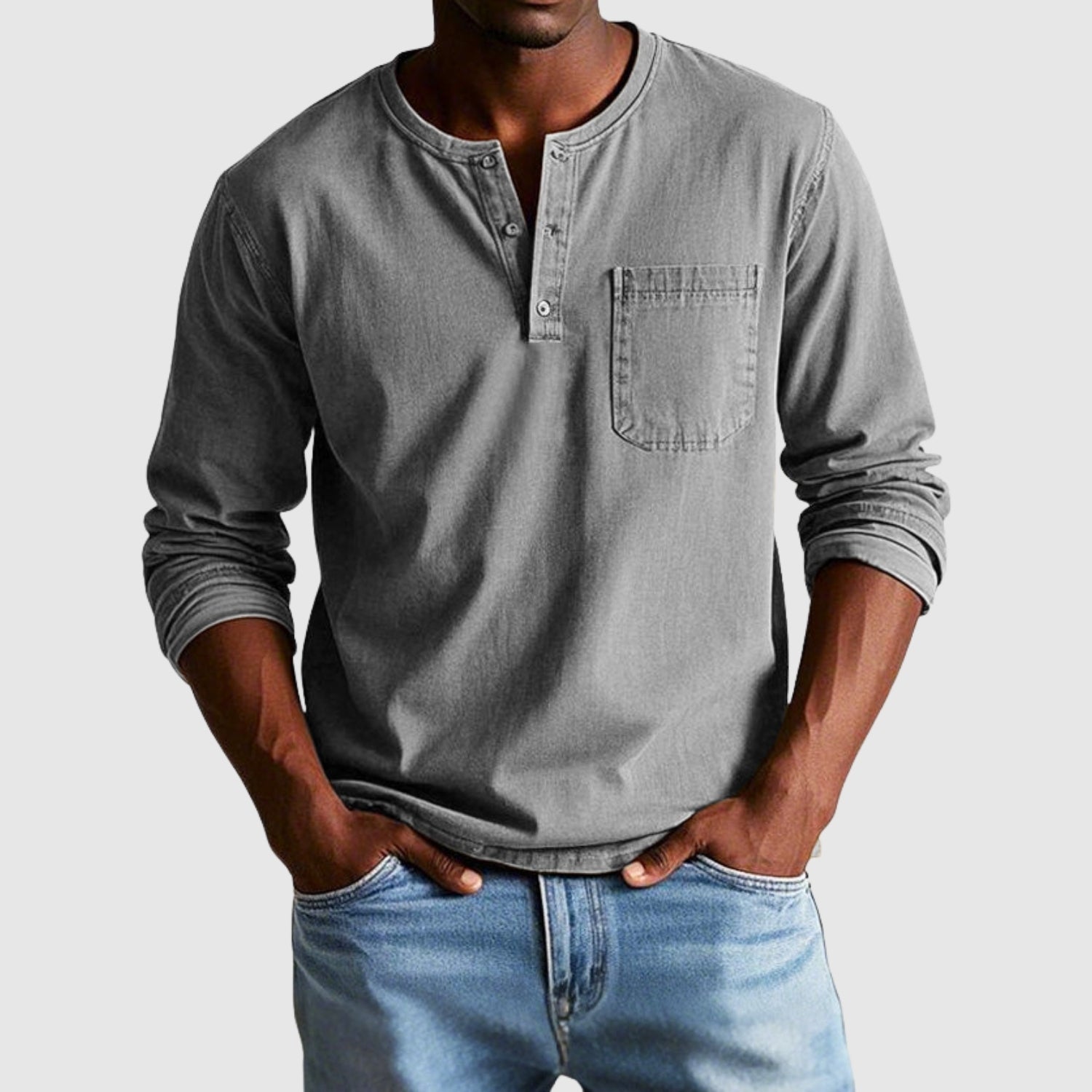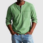 Táto košeľa s dlhými rukávmi, inšpirovaná večným šarmom vintage štýlu, ponúka dokonalú kombináciu pohodlia a charakteru. Otvorený výstrih, vrecko na hrudi a voľný strih ju robia univerzálnou voľbou pre neformálne vzhľady s autentickým nádychom. Ideálna pre tých, ktorí si cenia oblečenie s jedinečnou identitou.