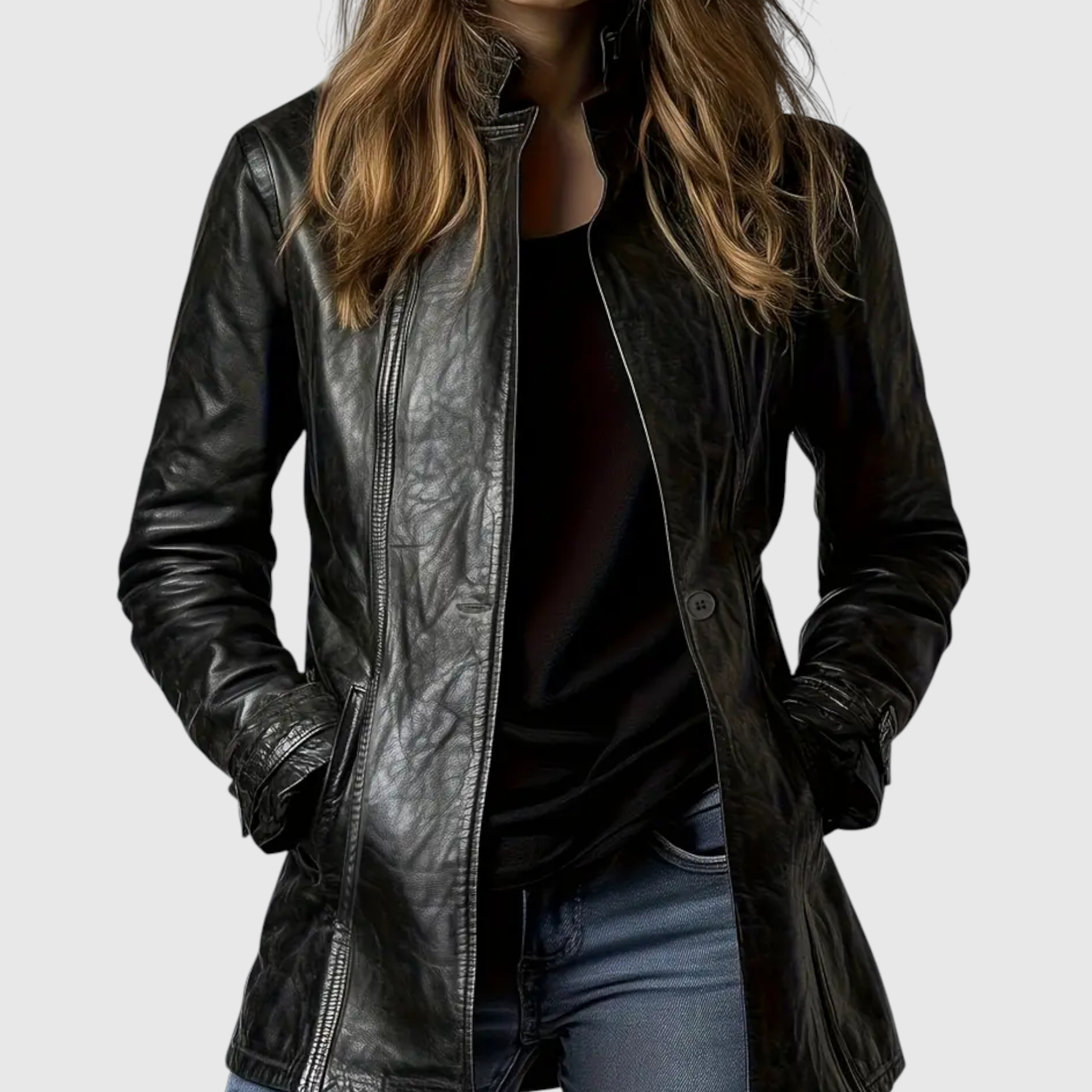 Adelina - Kožený kabát z talianskej kože s gombíkmi