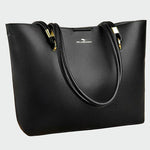 Elegantná dámska taška cez rameno v čiernej farbe, ideálna na každodenné nosenie a profesionálny vzhľad. Vyrobená z kvalitnej eko kože, ponúka odolnosť a štýl. Disponuje pohodlným vnútorným priestorom na všetky potrebné veci, zatiaľ čo dvojité ramenné popruhy zabezpečujú komfort pri nosení. Zlaté detaily dodávajú jemný pocit luxusu.