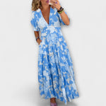 Catrisa - Šaty s kvetinovým potlačou a V-krkom s vreckami