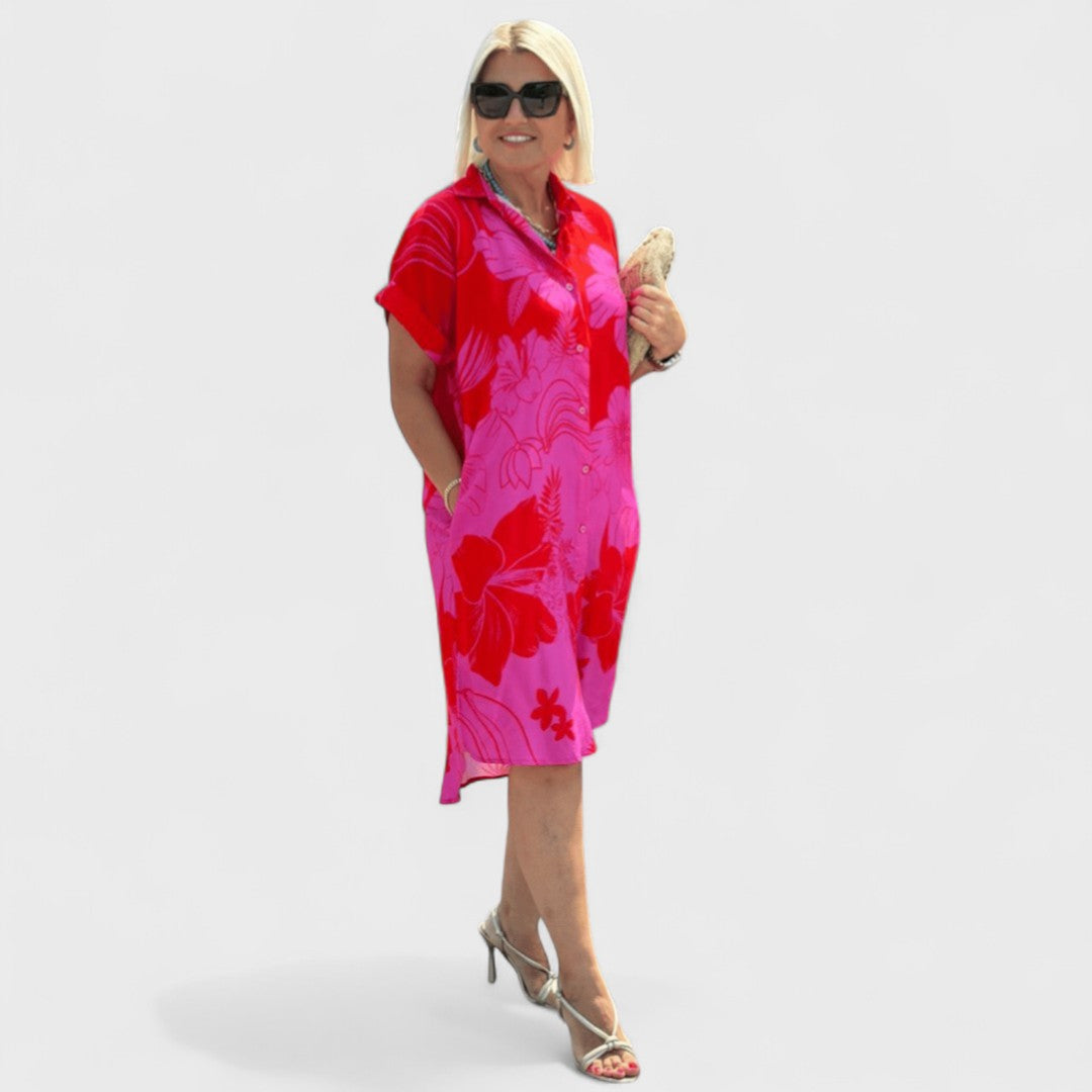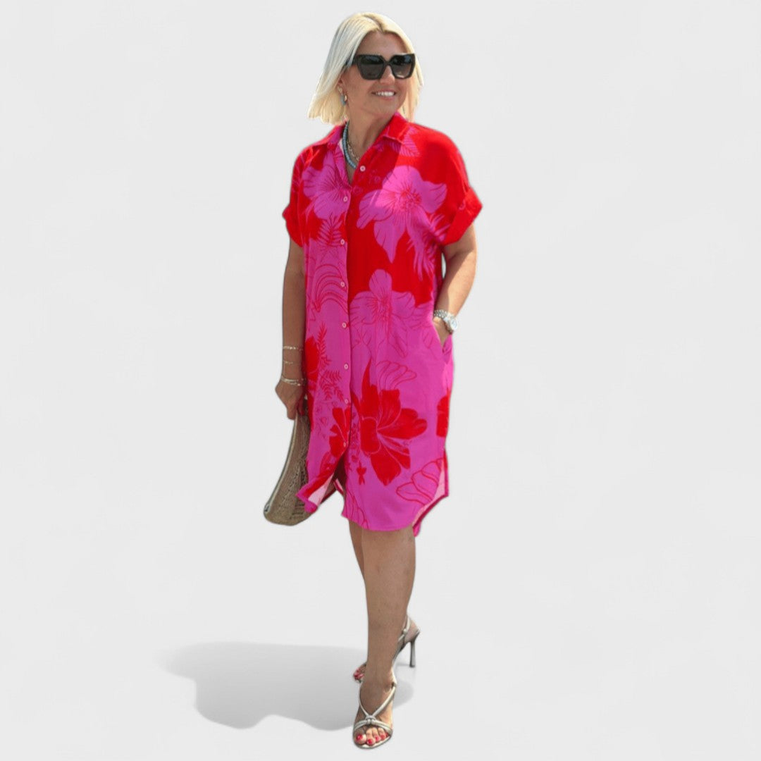 Šaty Dagmar sú dokonalou voľbou pre tých, ktorí hľadajú eleganciu a pohodlie v jednom. Ich ľahký a vzdušný materiál, zdobený jemným kvetinovým tlačom, vám prinesie pocit sviežosti a ženskosti. Pohodlný strih s viazaním v páse a midi dĺžka vytvára siluetu, ktorá je ideálna na každodenné nosenie, do mesta alebo na letné stretnutia.