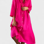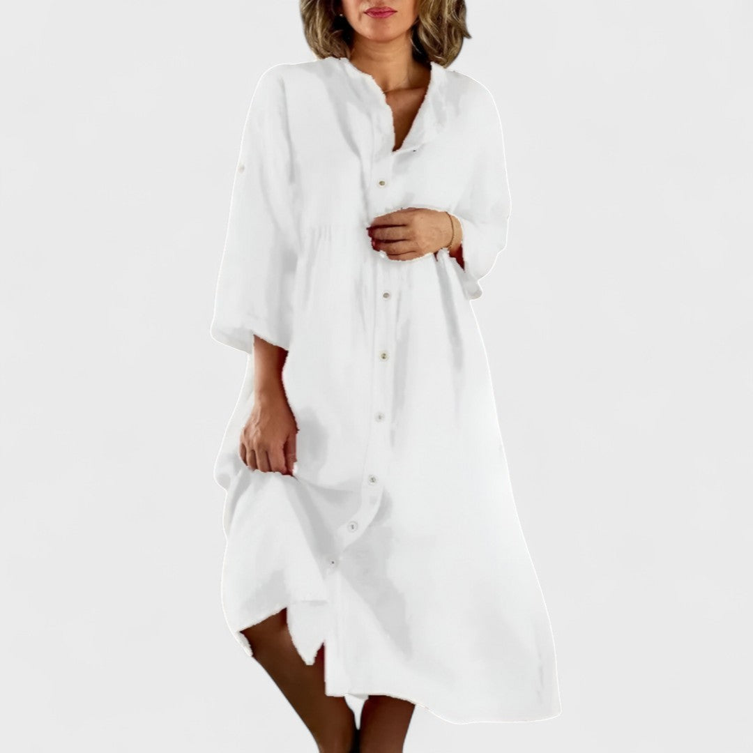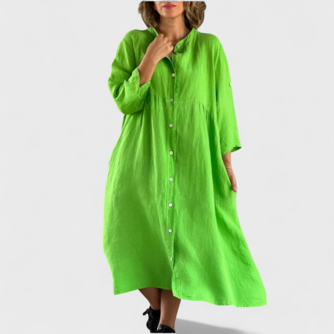 Šaty Isa sú perfektným nadčasovým kúskom na každý deň. Ich vzdušný a príjemný materiál, ktorý kombinuje bavlnu a ľan, je ideálnou voľbou pre horúce letné dni. Košeľový strih s elegantnými gombíkmi a viazaním v páse vytvára neformálny, ale zároveň ženský siluetu. Sú perfektnou voľbou na prechádzky po meste, do práce alebo na dovolenku, kde sa budete cítiť pohodlne a štýlovo.