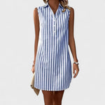 • Klasické pruhy – Modro-biele pruhy predlžujú siluetu a dodávajú šatám nadčasový vzhľad