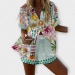 Osviež svoje leto s krátkou sadou Maevin s ovocným vzorom – hravý a svieži akcent pre tvoje každodenné pohodlie. S chutnými obrázkami ovocia a vzdušným siluetom, táto sada prináša radosť pri každom kroku. Ideálna na prechádzky po pláži, brunch s priateľkami alebo štýlové chvíle relaxácie.