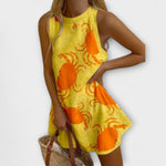 Objav mini šaty Orvienne s rakovým motívom – dokonalá kombinácia plážového šarmu a pohodlia na každodenné nosenie. S veselým rakovým potlačou na ľahkom, priedušnom materiáli, tieto šaty sú ideálne na dovolenku, neformálne stretnutia alebo relaxačné prechádzky po pláži.