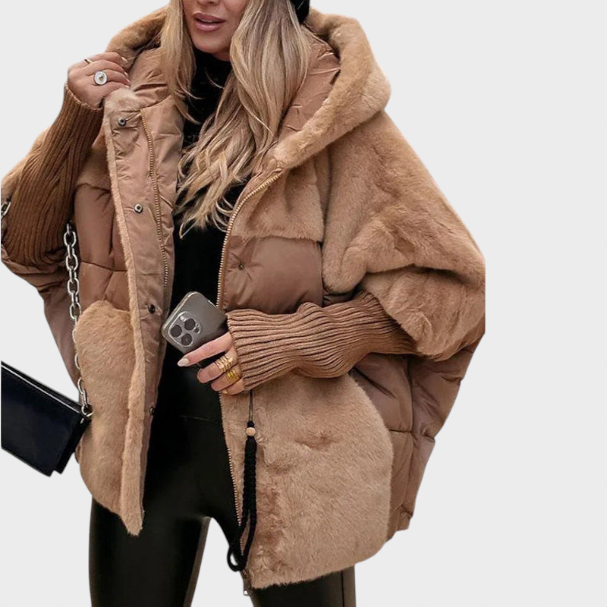 Eurelia – Kabát s kapucňou z umelého kožúška