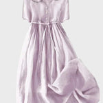 Jemné fialové šaty vyžarujú eleganciu a romantiku, ideálne pre každú ženu, ktorá túži po nadčasovom vzhľade. Minimalistický siluet zdôrazňuje ženskosť, zatiaľ čo opasok v páse jemne akcentuje tvar tela.
