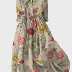 Dlhé šaty v zemských odtieňoch s kvetinovým vzorom kombinujú klasickú eleganciu a prirodzenú sviežosť. Dizajn jemne obopína telo a pásik na páse vytvára ženský a dobre tvarovaný siluetu. Tieto šaty prinášajú jar a harmóniu do každého vášho vzhľadu.