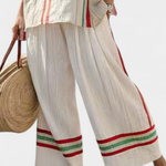 Súprava Stredozemné more Laika z bambusového ľanu s elegantnými červenými a zelenými pruhmi