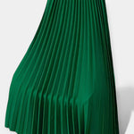 Impozantná a vzdušná, táto plisovaná sukňa s vysokým pásom a širokým siluetom je pozoruhodným prvkom pre každý šatník. Ideálna pre štýlové vzhľady od rána do večera, kombinuje pohyb, eleganciu a nadčasový charakter.