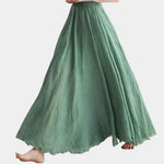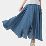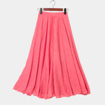 Obnovte svoj letný šatník s touto dlhou sukňou z ľahkého materiálu. Široký strih a prirodzený pohyb vytvárajú vzdušný vzhľad, ktorý ohromí pri každom kroku.