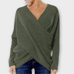 ✔️ Elegantný dizajn s V-krkom: Moderné prekrížené V-krk a asymetrický lem dodávajú tomuto svetru štýl.