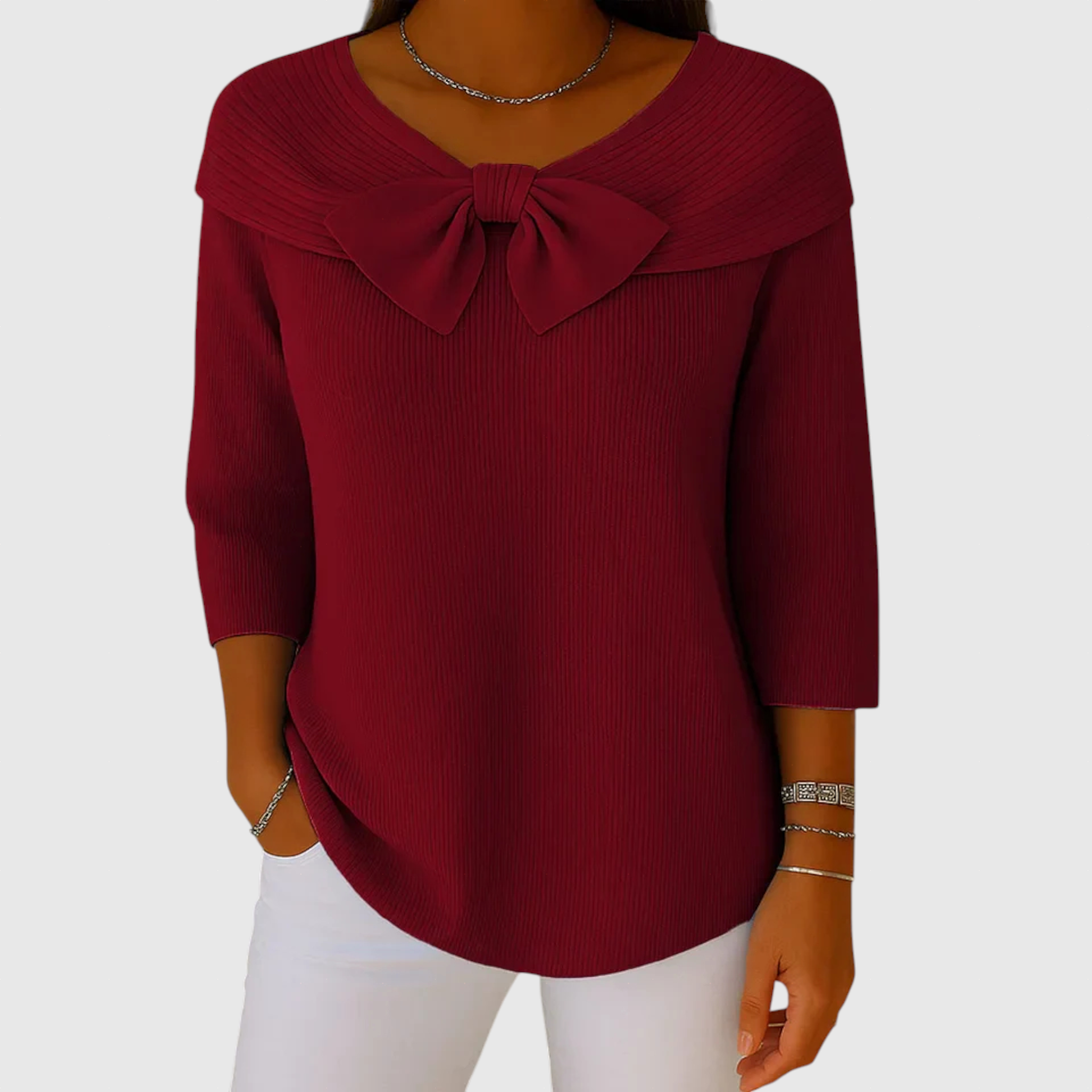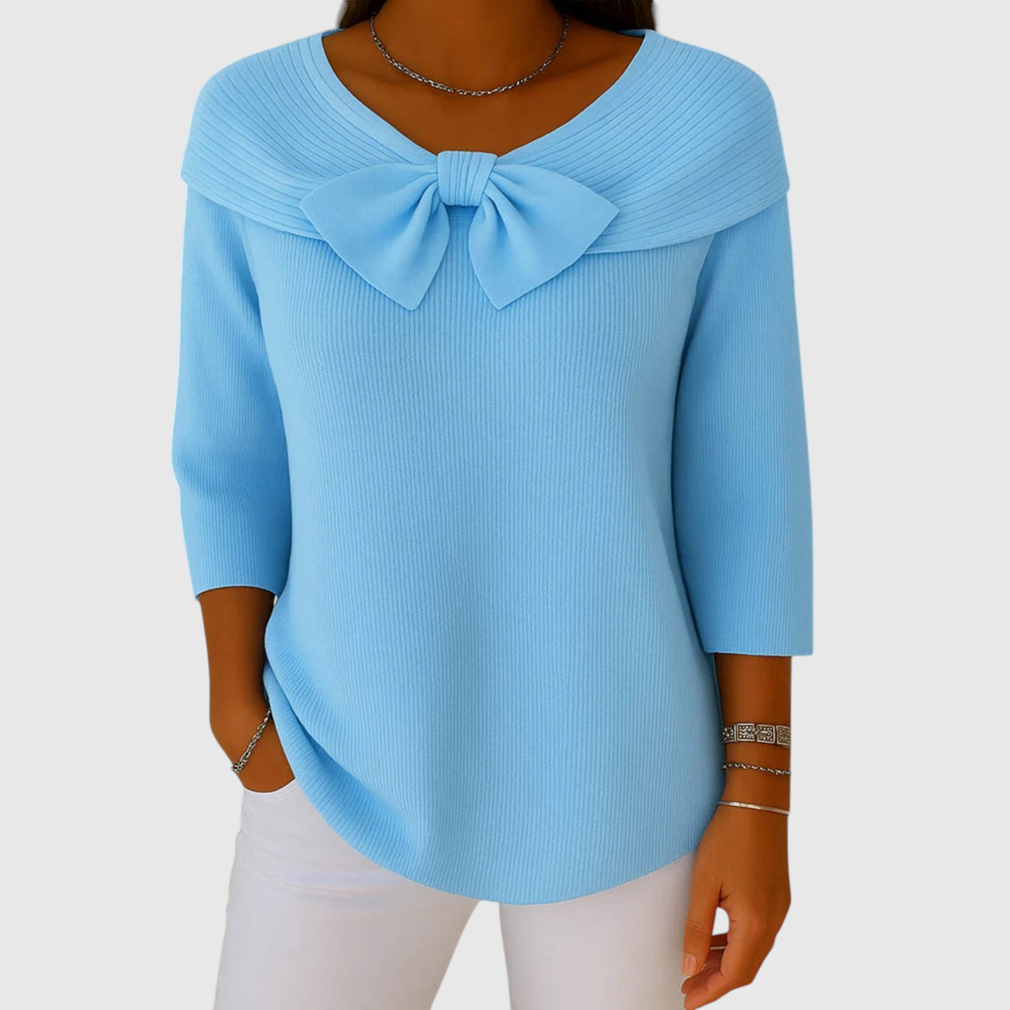 Serenna – Dámsky pulóver s mašľou a okrúhlym výstrihom
