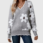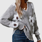 THEA - Elegantný V-krčný sveter s kvetmi