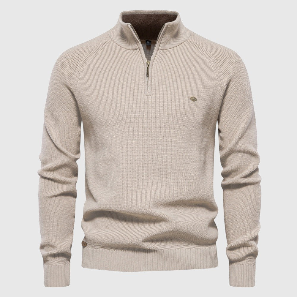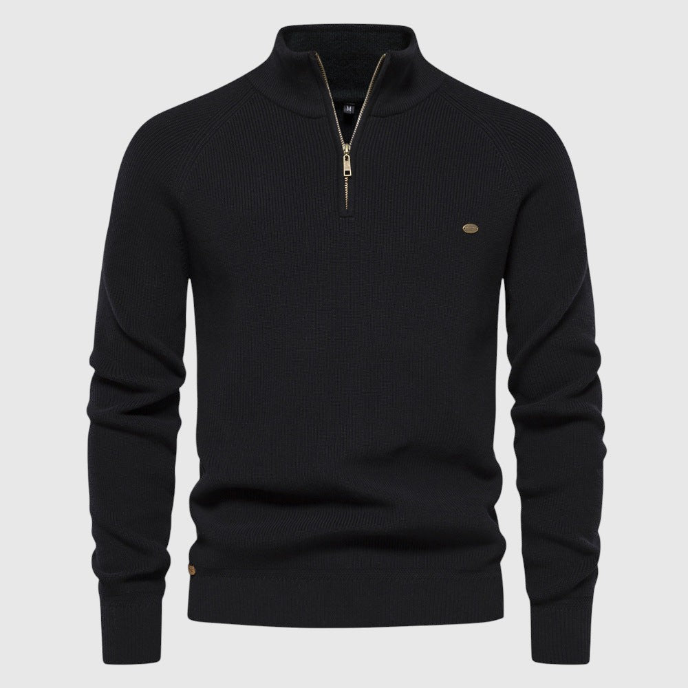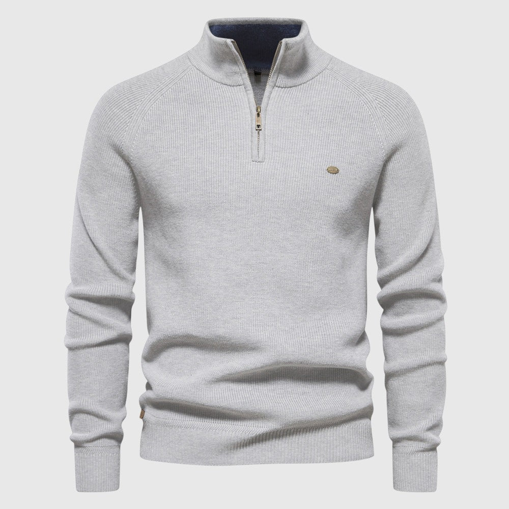 Luxusný sveter s zipsom je navrhnutý pre mužov, ktorí si cenia jemný komfort s elegantným nádychom. Vyrobený z vysokokvalitného materiálu, ponúka jemný a priedušný pocit s priliehajúcim strihom - ideálny na kombinovanie, elegantný každodenný vzhľad alebo na každodenné nosenie.