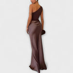 Ukážte svoju eleganciu s týmito nádhernými maxi šatami s jedným ramenom a jemnými plisovaním. Navrhnuté pre náročnú ženu, tieto šaty ponúkajú asymetrický výstrih a jemné plisovanie, ktoré sa zhromažďuje v elegantnom maxi siluete až po zem.