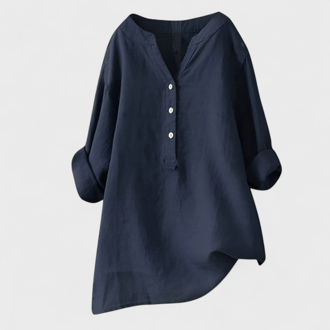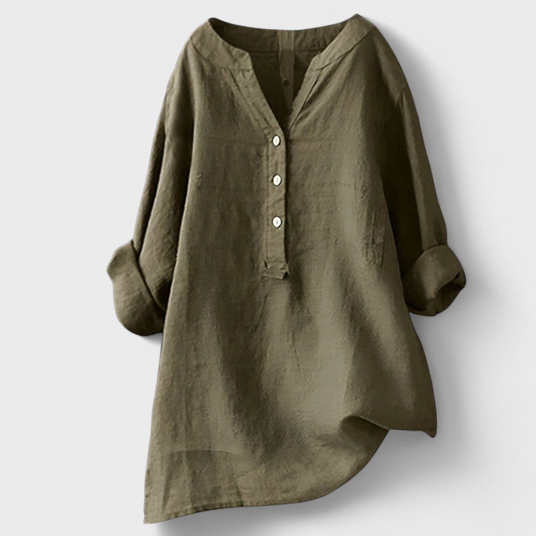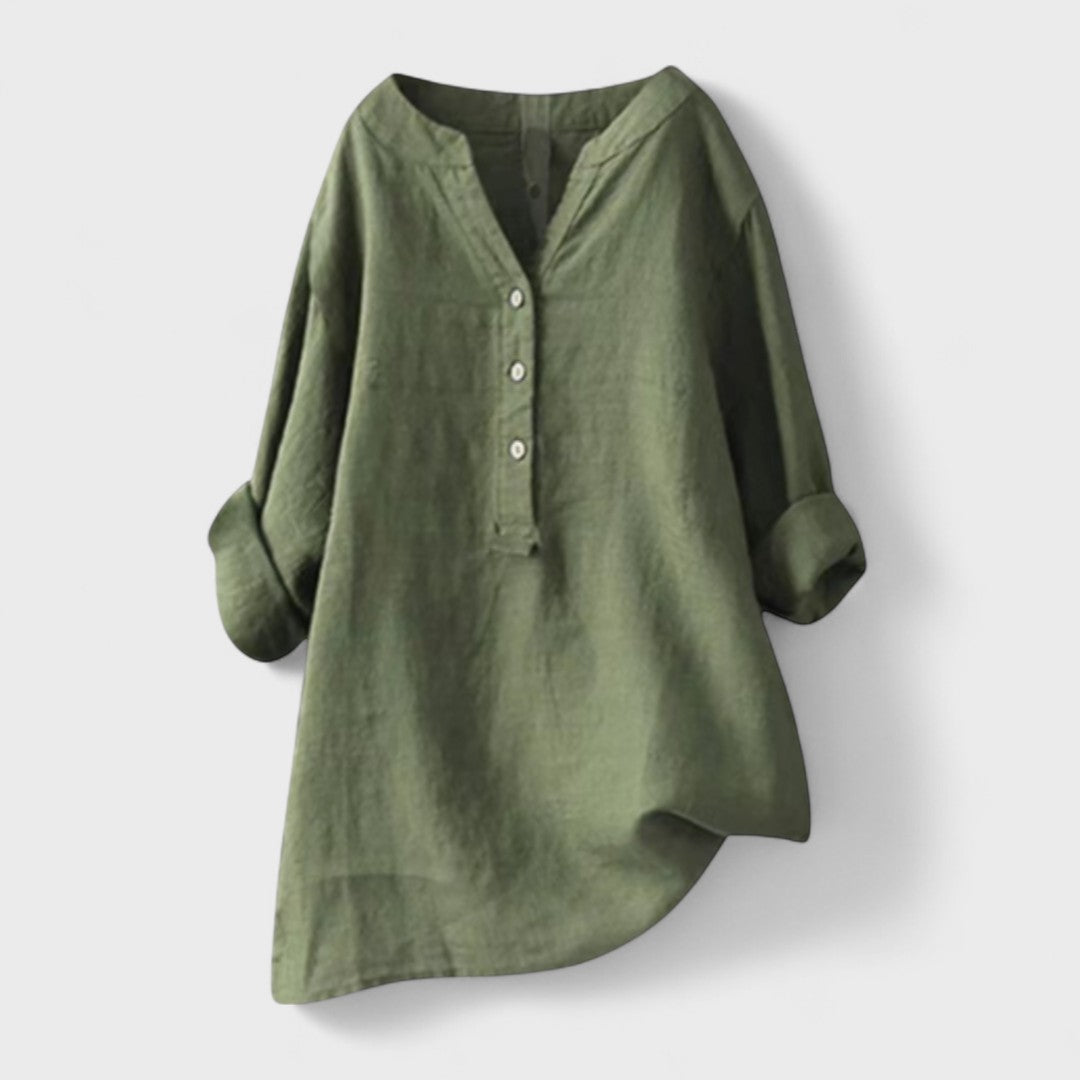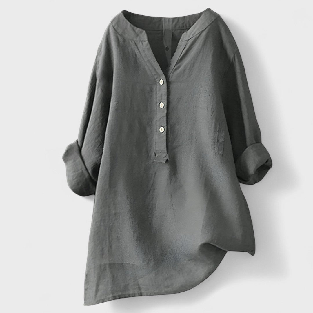 Košeľa Freya je nepostrádateľným prvkom na dni, keď chcete vyzerať upravene, ale cítiť sa voľne. Vyrobená z ľahkého, priedušného materiálu, ktorý vám umožňuje dýchať aj v horúcom počasí. Klasické zapínanie na gombíky a diskrétny golier dodávajú večný vzhľad, zatiaľ čo voľný strih s mierne predĺženou dĺžkou láskyplne obopína postavu a poskytuje vynikajúci základ na vrstvenie.