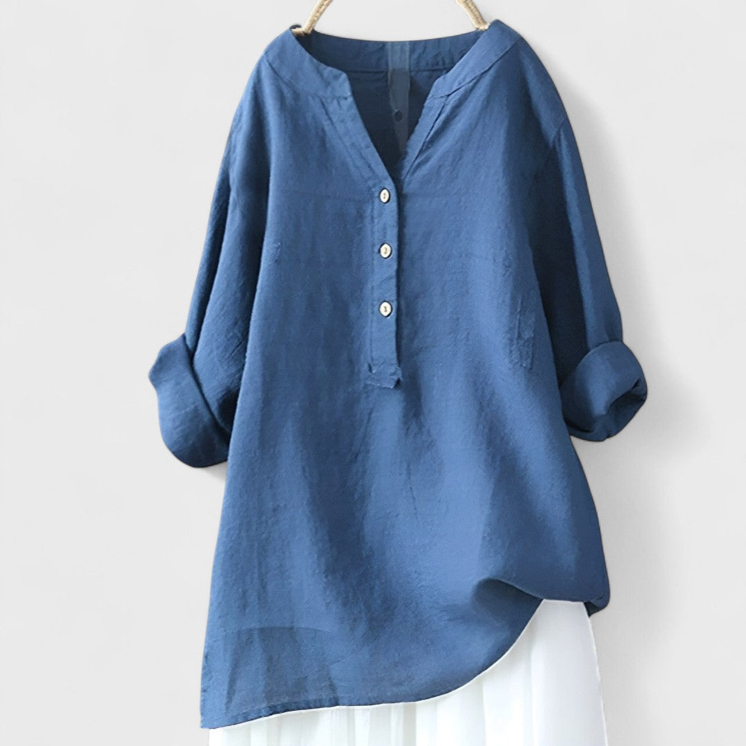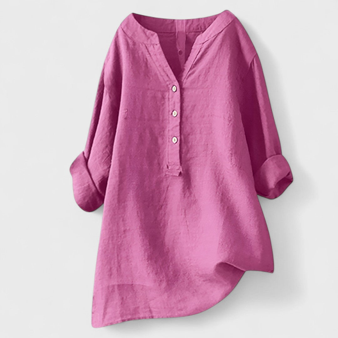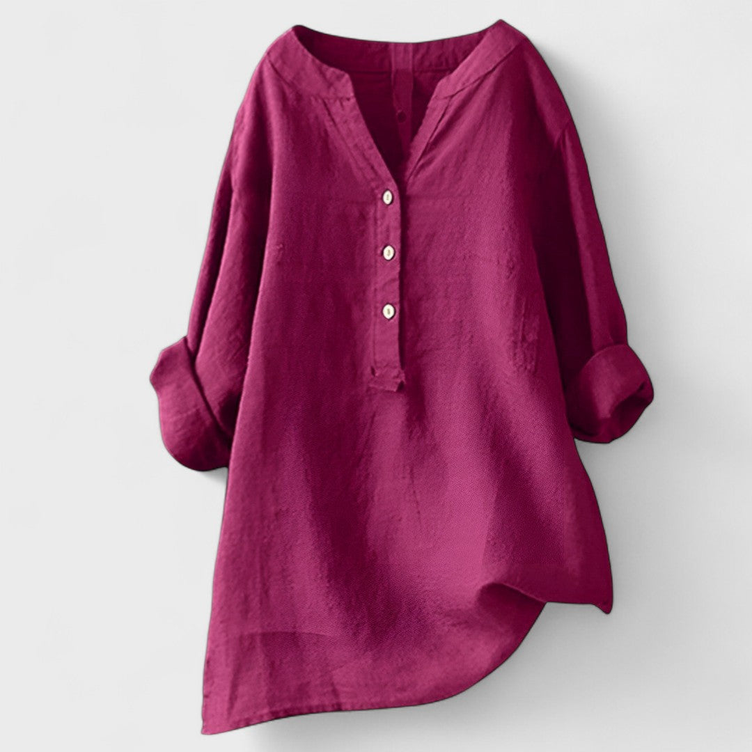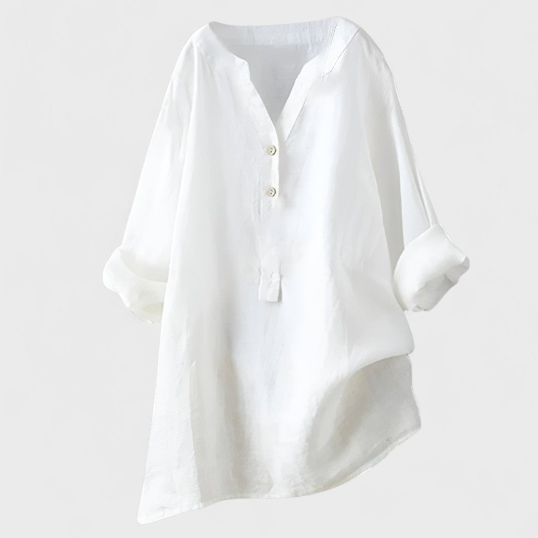 Košeľa Freya je nepostrádateľným prvkom na dni, keď chcete vyzerať upravene, ale cítiť sa voľne. Vyrobená z ľahkého, priedušného materiálu, ktorý vám umožňuje dýchať aj v horúcom počasí. Klasické zapínanie na gombíky a diskrétny golier dodávajú večný vzhľad, zatiaľ čo voľný strih s mierne predĺženou dĺžkou láskyplne obopína postavu a poskytuje vynikajúci základ na vrstvenie.